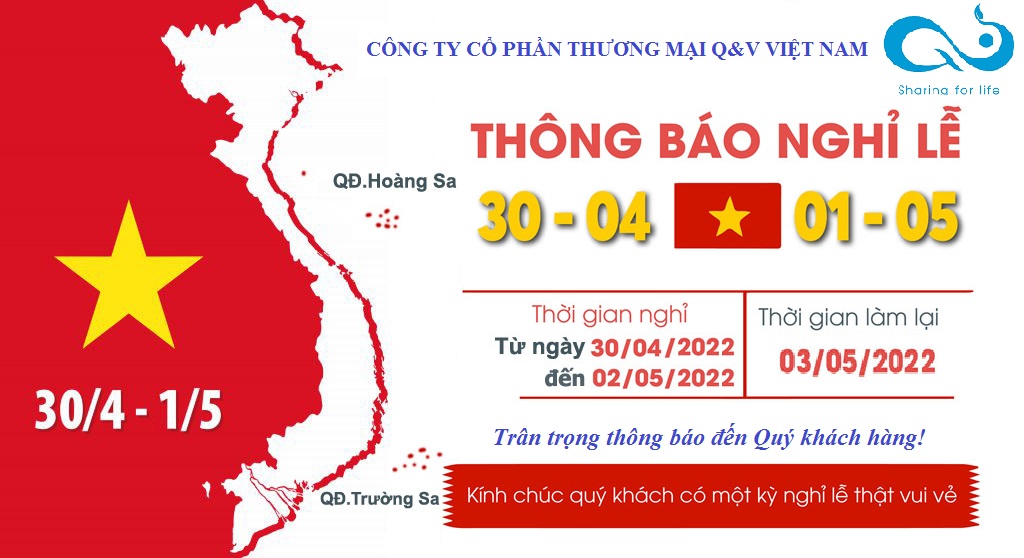 Công ty Cổ phần Thương mại Q&V Việt Nam trân trọng thông báo Lịch nghỉ Lễ 30/4 - 1/5 năm 2022