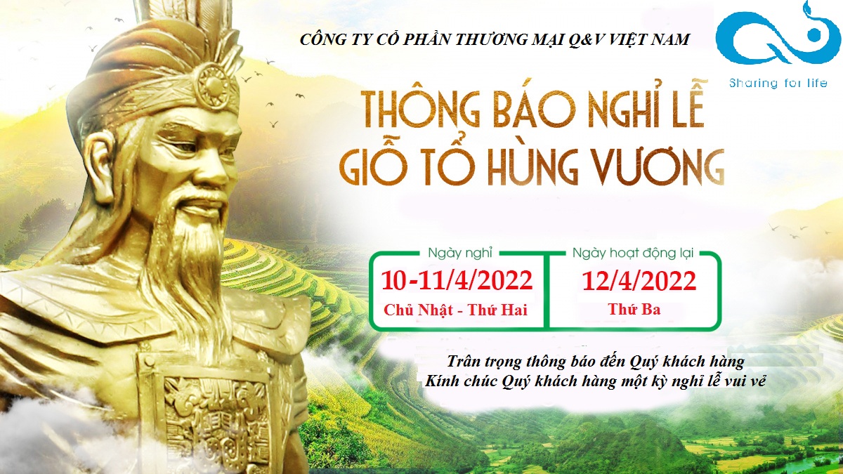 Công ty Cổ phần Thương mại Q&V Việt Nam trân trọng thông báo Lịch nghỉ Lễ Giỗ Tổ Hùng Vương 10/3 năm 2022