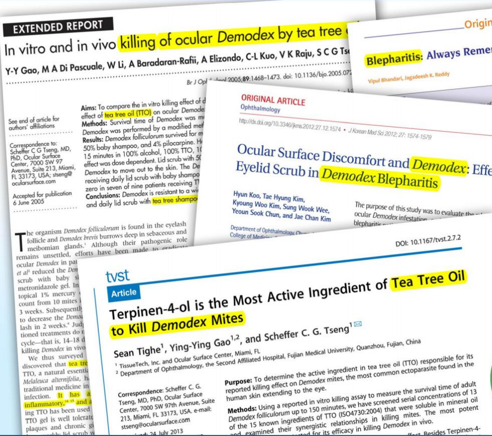 Một trong số nhiều bài báo nghiên cứu tác dụng tiêu diệt Demodex của tinh dầu tràm trà