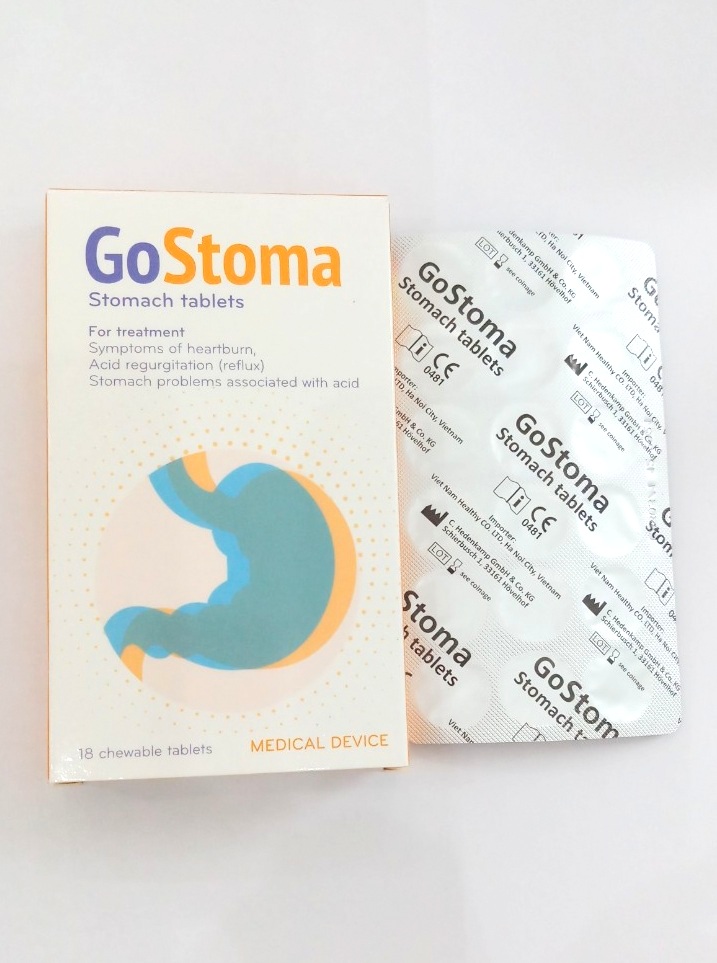 Gostoma là sản phẩm nhập khẩu trực tiếp từ Đức và được người Việt tin dùng hơn 1 năm nay. Đây là sản phẩm có tác dụng kháng acid và cải thiện các chứng bệnh: loét dạ dày, loét tá tràng; viêm dạ dày; các chứng bệnh do tăng tiết acid (ợ nóng, buồn nôn, nôn, đau dạ dày, ợ); bệnh trào ngược thực quản.