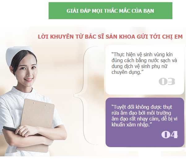 Bác sĩ Tình cho biết, ngoài việc kiêng cữ chuyện sinh hoạt chăn gối vợ chồng, việc giữ gìn bộ phận sinh dục được sạch sẽ cũng vô cùng quan trọng có thể phòng tránh viêm nhiễm. Sản phụ ra mồi hôi nhiều, bộ phận sinh dục lại tiết ra khí hư vì vậy cần phải chú ý vệ sinh sạch sẽ, đúng cách theo tư vấn của bác sĩ.