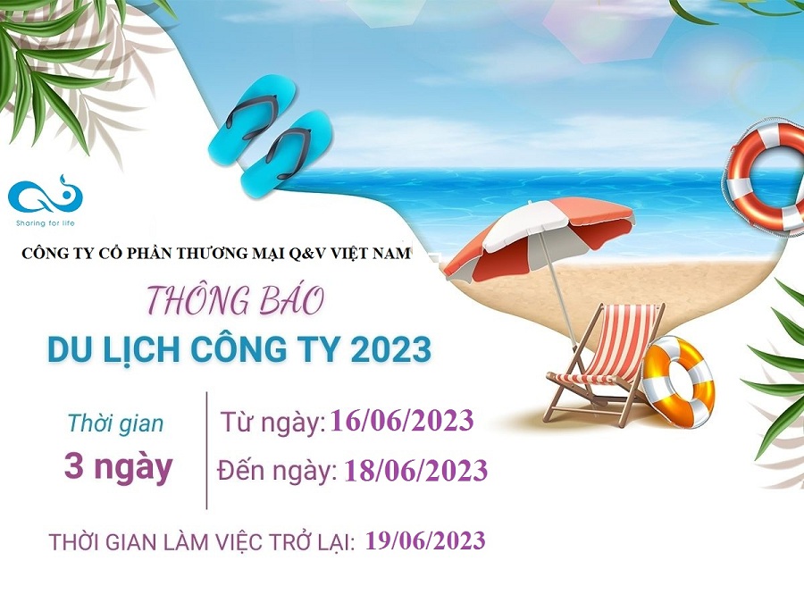 Kính gửi: Quý khách hàng/ Đối tác Để chủ động trong quá trình đặt hàng giao hàng Công ty Cổ phần Thương mại Q&V Việt Nam trân trọng thông báo LỊCH NGHỈ DU LỊCH HÈ 2023. Kính mong quý khách hàng và đối tác thông cảm và lưu ý thời gian đặt hàng. Trân trọng cảm ơn!
