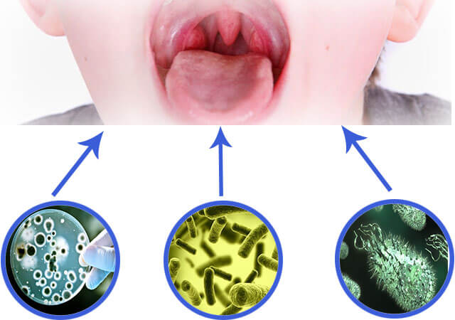 Căn nguyên của tình trạng này hầu hết là do nhiễm virus hoặc vi khuẩn. Viêm họng thường xảy ra khi thời tiết giao mùa hoặc mùa lạnh - đây chính là thời điểm thuận lợi để virus và vi khuẩn phát triển, nhân lên và gây bệnh. Thường là nhiễm virus trước, sau đó bội nhiễm các tạp khuẩn khác mà thường là các vi khuẩn hội sinh có sẵn trong họng như liên cầu, phế cầu. Bệnh có thể lây từ người này qua người khác bằng nước bọt, nước mũi.